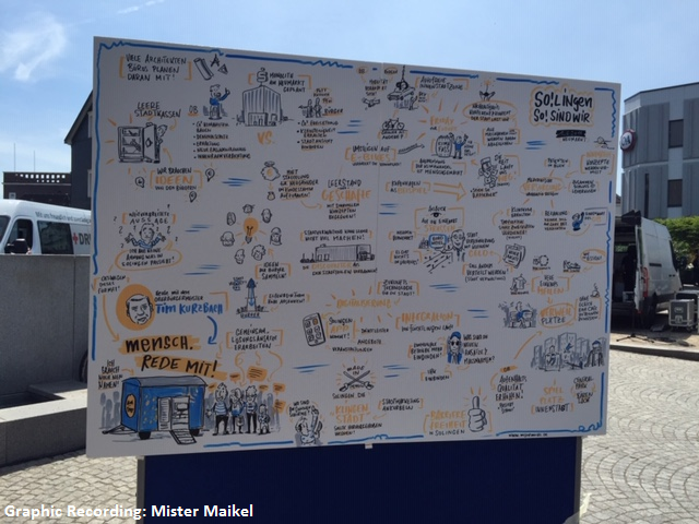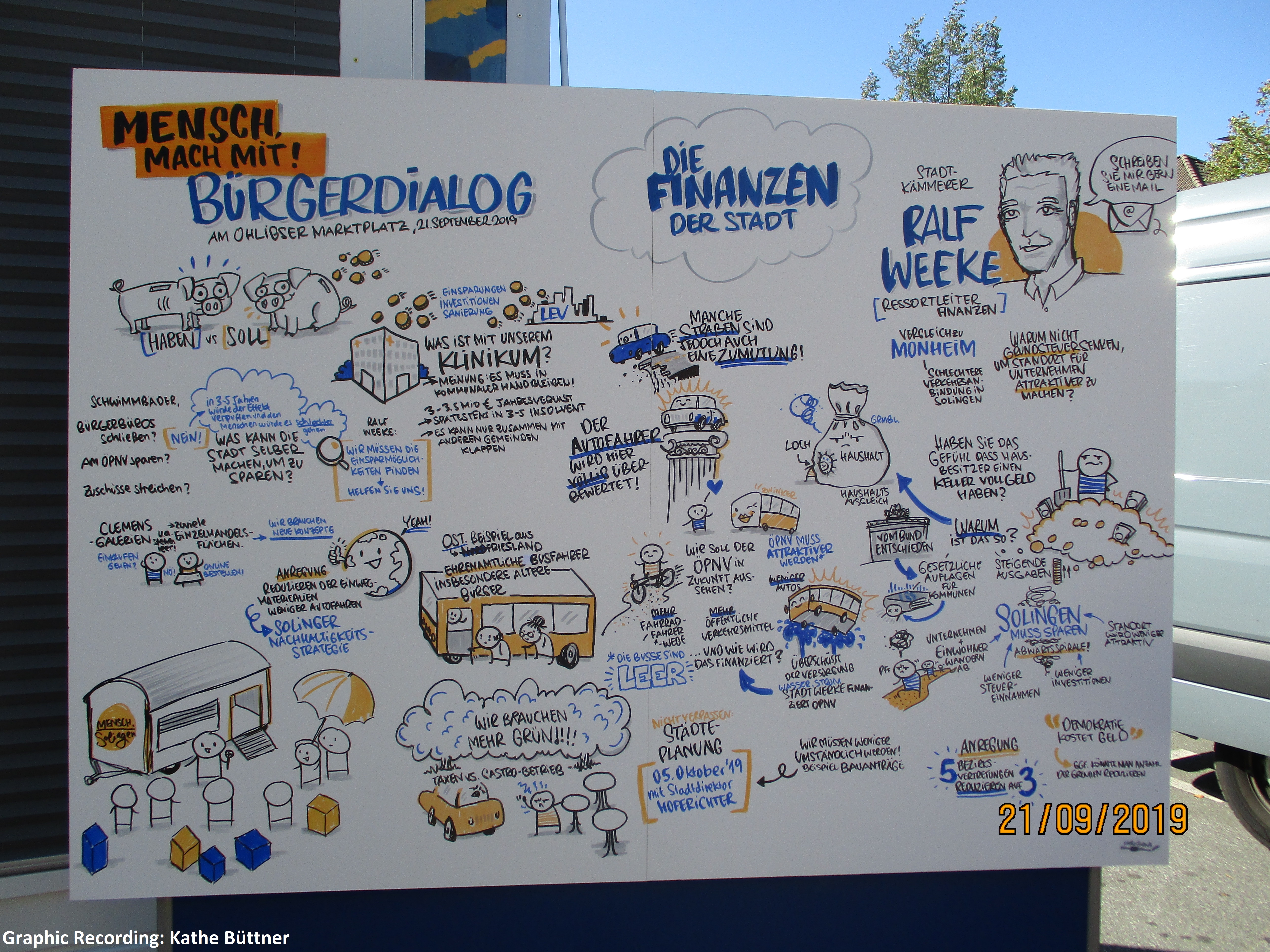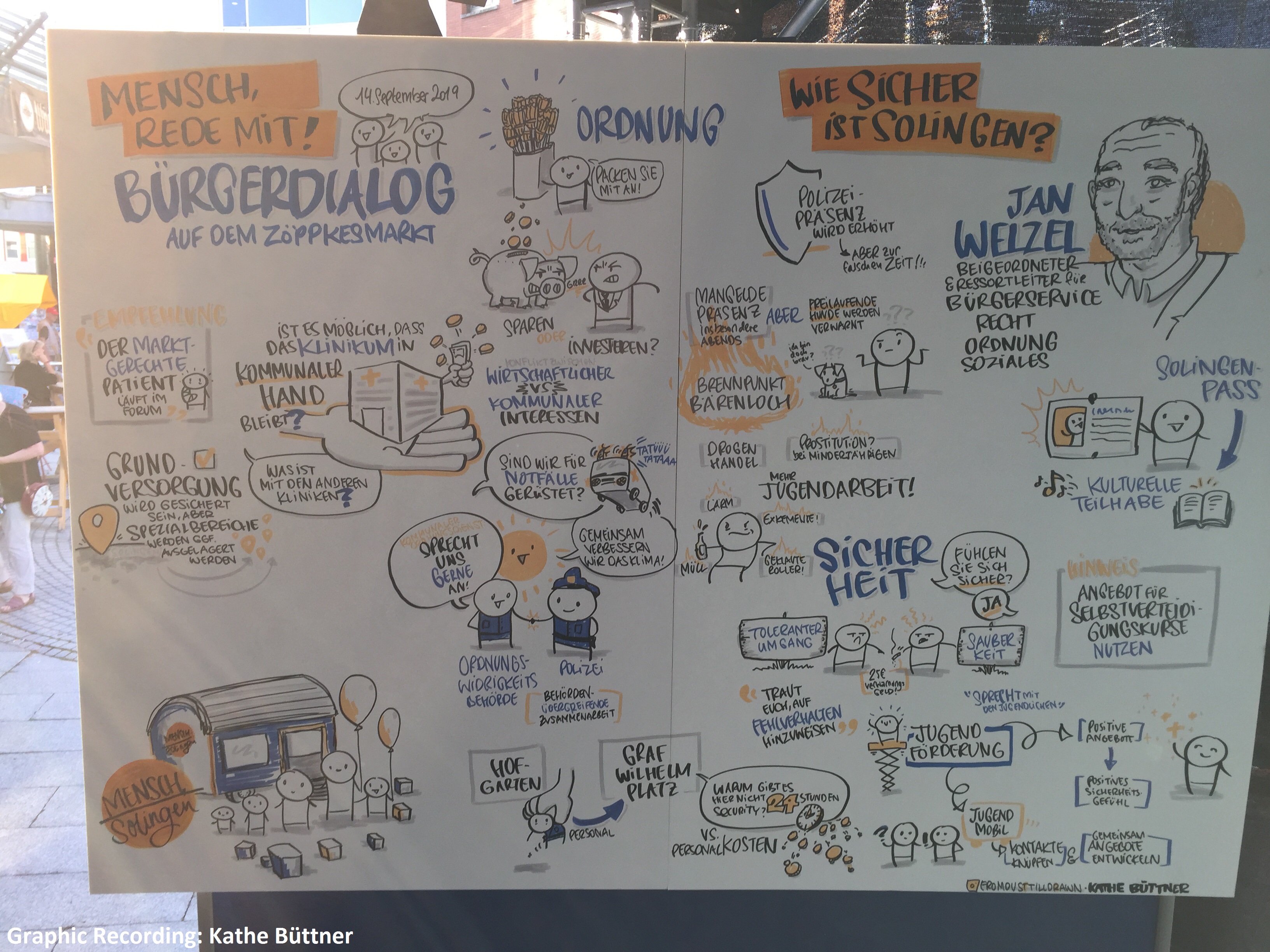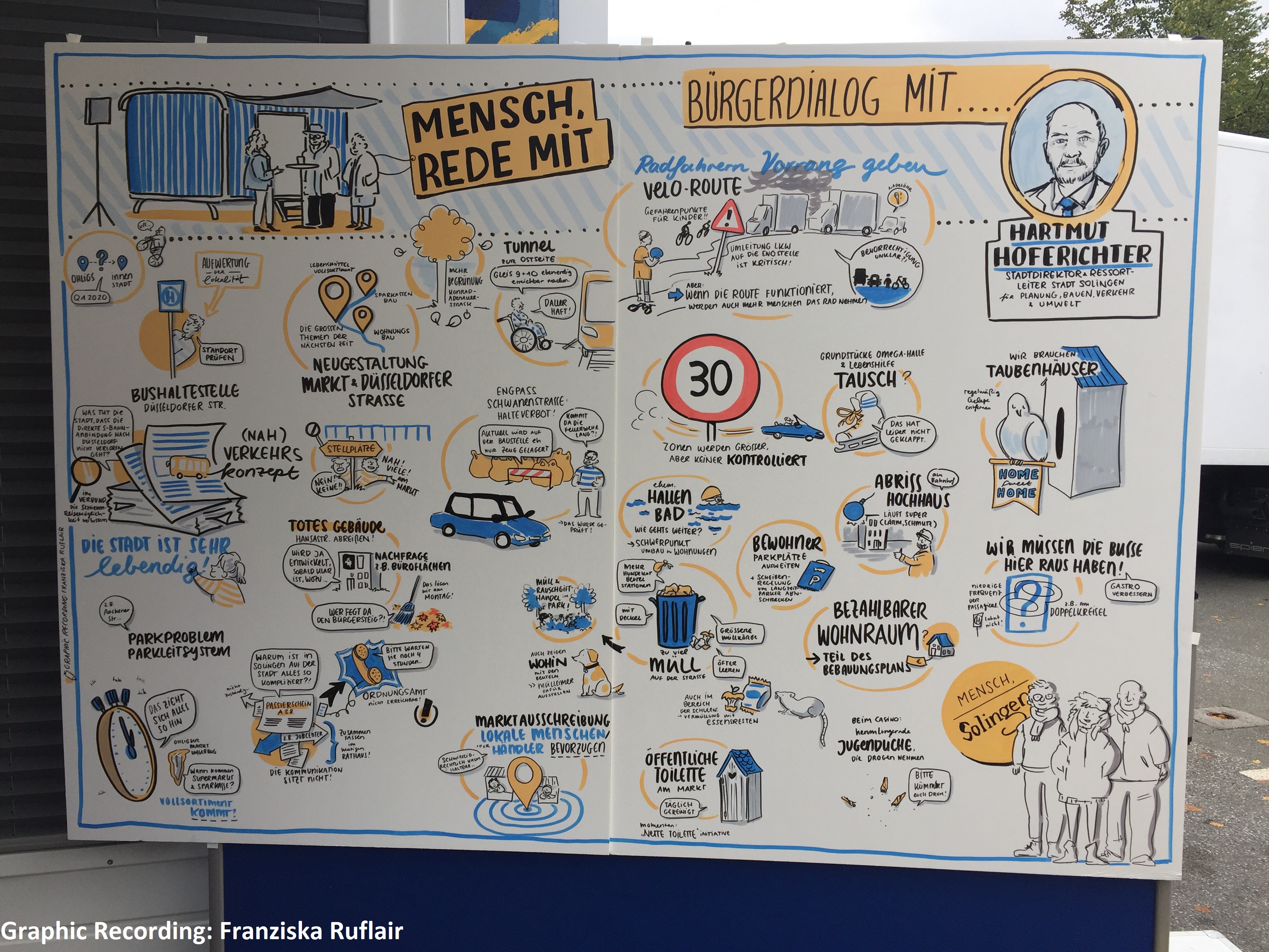 Die Anregungen und Ideen der Bürgerdialoge mit dem Oberbürgermeister und der Verwaltungsspitze wurden graphisch festgehalten.